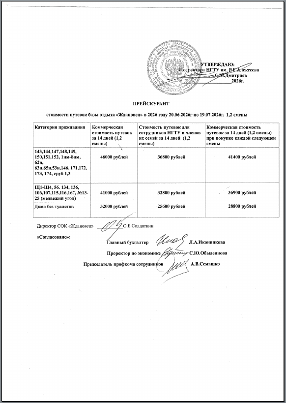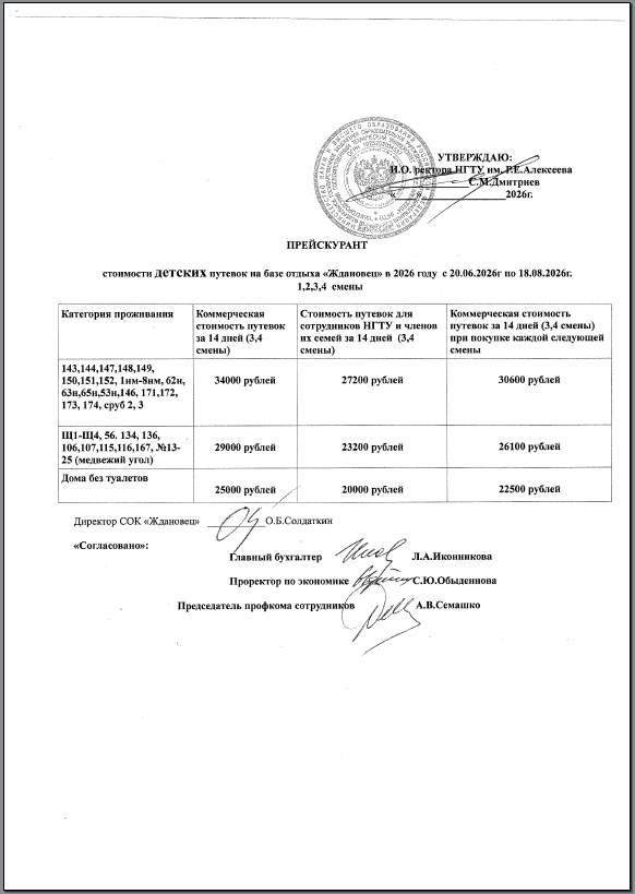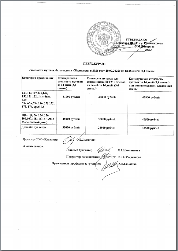 - Продажа путевок на базу отдыха «Ждановец» в сезоне 2026 года будет производиться согласно Прейскурантам стоимости путевок, приведенных ниже.